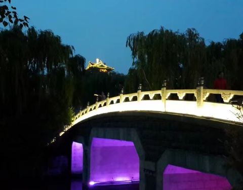 大明湖景区这边儿游船坐一坐也还可以啊,门票是21位,除了这个坐船之外呢,还有跟前儿有听戏的地方,但是我们很遗憾去的时候是晚上了啊,所以船是没有做成,嗯,但是我觉得有机会白天坐船可能不如晚上好看,因为...