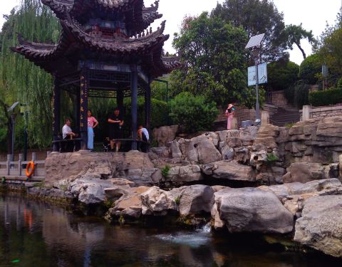 趵突泉公园位于济南市中心繁华地段,南倚千佛山,北靠大明湖景区,东与泉城广场连接,是以泉水为主题的特色园林,而园中出名的当属被誉为“天下第一泉”的趵突泉,它位于济南“七十二名泉”之首,至今已有2000多年的历史。它也曾多次出现在文学作品中,有代表性的则是老舍笔下的《趵突泉》。而游客来此都是为了一睹趵突泉三股泉水喷发的壮丽景象。趵突泉是公园中的主景,泉水分三股,澄澈清洌,昼夜喷涌,水盛时高达数尺。泉的四周有大块砌石,环以扶栏,可在栏边俯视池内三泉喷涌的奇景。泉边立有石碑一块,上题“第一泉”,其色为墨绿色,为清同治年间历城王钟霖所题。此外,在趵突泉附近,还散布着金线泉、漱玉泉、洗钵泉、柳絮泉、皇华泉、杜康泉、白龙泉等三十多个名泉,构成了趵突泉泉群。由于7、8月份当地雨水较多,因此此时是来观赏泉水的佳季节。此外,趵突泉景区也推出了游船线路,游客游览完趵突泉景区后,有兴致的话可从趵突泉船展登船,坐船穿过济南老城区的西门桥,途经五龙潭公园东门,进入济南历史上的首座客运船闸——五龙潭船闸,期间可感受2米多的落差。坐在船的东侧还能看到“济南八景”的浮雕。沿途岸边有很多的水生植物,而且河水清澈见底。游船终穿过烟波桥,就进入了大明湖景区。