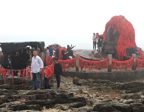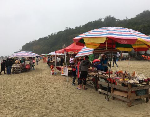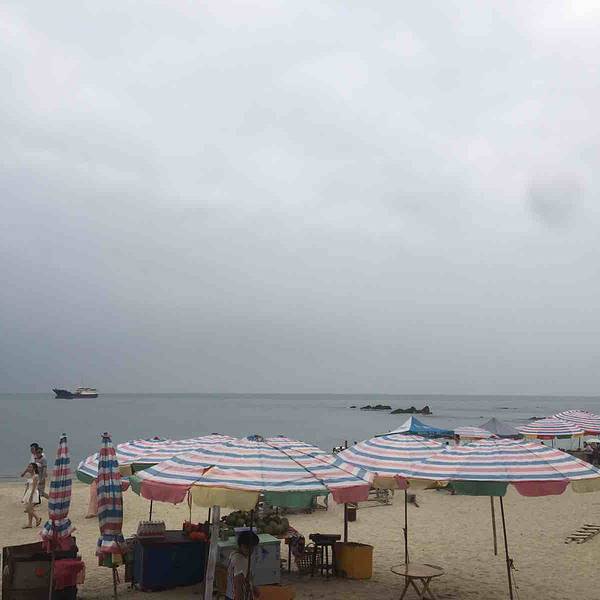 海滩很小,各种当地人摆的海鲜烧烤摊,射击,算命的,显得杂乱无序,海滩很脏,最搞笑的是有个大石天...