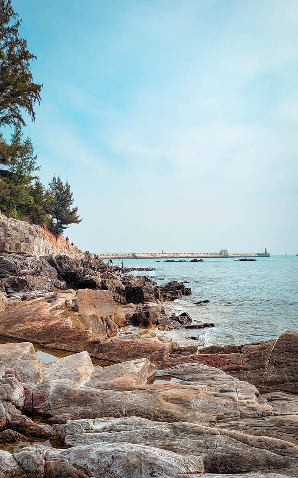 海蚀奇观、礁石遍布,这里景色秀美,更是北海赶海的热门地。