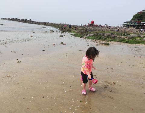 因时间关系,只停留了一小时左右,海枯石烂是标志性设施,这里最大的特点就是有礁石,海的感觉更明显些,下午时分到的,海水开始涨潮了,感觉近海滩海水水质不是很好,沙粒也较粗,无免费洗脚冲沙点,收费每人次1元。