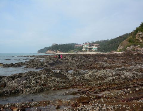 位于 北海 市西尽端,距市区8公里。公交车16路终点站,下来后,再从小路走进去800米,就到海滩了。 海边很多石头,风景蛮好的,有很多拍婚纱照的在这里。如下图,特别多的礁石,沿着石头慢慢爬,能爬到海滩的另外一边