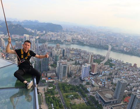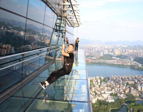 值得尝试,走上玻璃栈道克服自己,相信自己,就会感觉到力量,不是绳索给你安全感,是你相信了,才有安全感