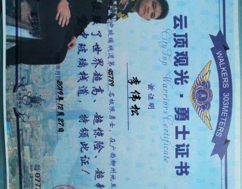 有兄弟家人陪着上去。刚刚出去有点紧张,教练指导,慢慢就习惯了。 一开始感觉还好,一下来以后有点没有过瘾的感觉。 价格也相对来说比较合理,还发了个勇士证书,全部图片才20快钱。性价比还可以 个人建议如果白天上去,出大太阳买上去风景比较舒服