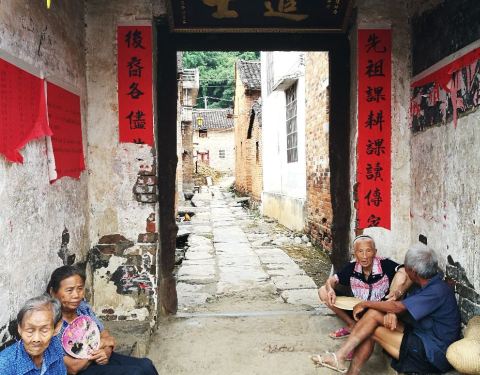 这个古街的主要建筑也是明清建筑,村内依然有小溪流过。小溪与村庄的搭配是富川古村落的标准搭配,这个村庄的保护一般。目前生活的以老人为主。
