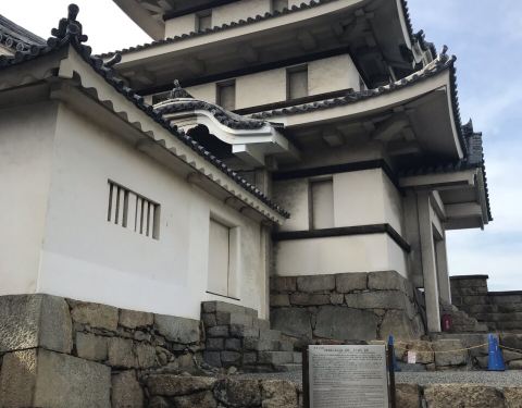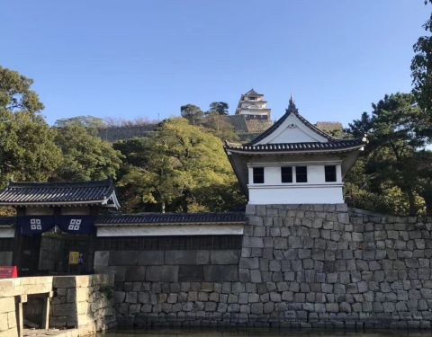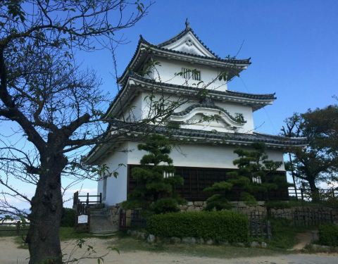 丸龟城位于香川县丸龟市。造城主人曾是細川赖之的重臣奈良元安,之后生驹亲正把它作为高松城本城的支城,正式开始修建,经过6年的时间完成了目前现在的城廓。丸龟城较大的大特征就是石垣。勾勒扇形斜坡的曲线,四层重叠的石垣的高度有60米。全部的城址被指定为国家古迹,成为现在的龟山公园。现存的除木造天守阁之外,还有大手一门、大手二门、宫殿大门、市镇衙门以及长屋。其中,天守阁、大手一门、大手二门被指定为重要文物。公园每年春天举办樱花节1000株日本樱花争相盛开,约300个纸罩蜡灯在夜晚相继被点亮,游客可以充分享受氛围感十足的夜樱美景。