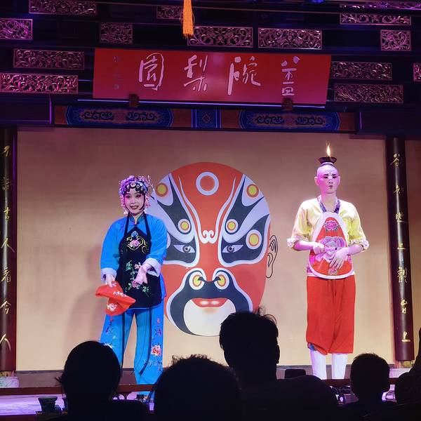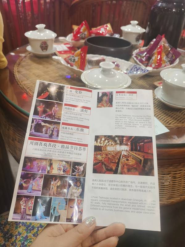 因为临时兴起买的 只有加座 角度有点难受 但是不影响观赏。配上碗盖茶 很惬意虽然是传统艺术 但是内容精过挑选 呈现出来的都是丰富精彩的表演。大家都兴致盎然的。因为临时兴起买的 只有加座 角度有点难受 但是不影响观赏。配上碗盖茶 很惬意。变脸的小哥哥手比我软嘻嘻
