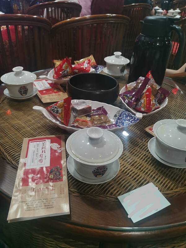 非常精彩的手影表演。虽然看不太懂,但是感觉水平是挺不错的。杂技表演。变脸表演看川剧表演的地方就在天府广场下面,去哪儿网上113元,晚上8点到9点半,供应茶水和小零食,还可以穿戏服拍照,但是演出过程中要求不能连续拍照和摄像。