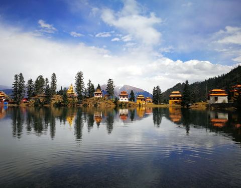 位于新龙县麻日乡境内,被誉为“人间仙境,九天瑶池”。湖水面积约3平方公里,最深处达38米。湖水清澈湛蓝,如一块巨大的蓝宝石镶嵌在山间。四周群山环抱,山上植被丰富,四季景色各异。春季,湖畔野花烂漫;夏季,绿树成荫,是避暑的好去处;秋季,层林尽染,五彩斑斓;冬季,银装素裹,宛如童话世界。