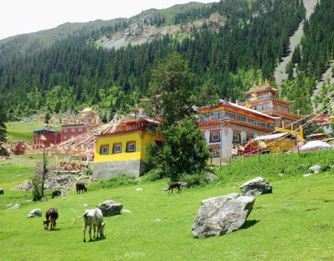位于新龙县博美乡境内。益西寺历史悠久,是一座古老的藏传佛教寺庙。寺庙建筑风格独特,融合了藏族传统建筑艺术和佛教文化元素。寺内保存着大量的佛教经典、壁画和佛像等珍贵文物。壁画内容丰富,色彩鲜艳,具有极高的艺术价值。寺庙内的僧侣们每日诵经修行,传承着古老的佛教文化。