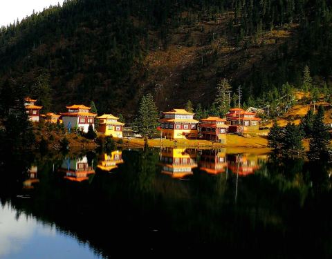 高原早已秋意浓浓,到处是一片亮黄的秋景,麻日乡蜿蜒曲折的盘山路有那么点秋名山的味道,慢慢攀升,...清晨民宿的老奶奶正在熬制酥油茶,为我早起的我们一人盛了一碗,经过改良的没了牦牛的膻味特别好喝,带着暖意,避开人流的潺动,往措卡湖前行。高原早已秋意浓浓,到处是一片亮黄的秋景,麻日乡蜿蜒曲折的盘山路...清晨民宿的老奶奶正在熬制酥油茶,为我早起的我们一人盛了一碗,经过改良的没了牦牛的膻味特别好喝,带着暖意,避开人流的潺动,往措卡湖前行。高原早已秋意浓浓,到处是一片亮黄的秋景,麻日乡蜿蜒曲折的盘山路有那么点秋名山的味道,慢慢攀升,山腰上零星点缀的藏居,层次感已让这里犹如世外桃源,花开的季节我想更是不可言喻的吧。进入措卡湖需要缴纳20元/人的卫生费,说是要交到寺庙的,这个价钱我觉得完全没问题,相对于以前需要徒步或者骑马上来,现在好很多,而且停车也方便,此时已有部分赶早的自驾者来到这里,旅游团基本是不会来到此地。初升的太阳将树与屋染上金黄的外衣,这本就是很惬意的时刻,秋风吹拂脸庞,树影婆娑,湖面波光粼粼,倒映着岸边红屋;静谧,除了这两个字再多得言语我都想不出来,任何华丽的词藻我想只是为了凑字数了。 展开
