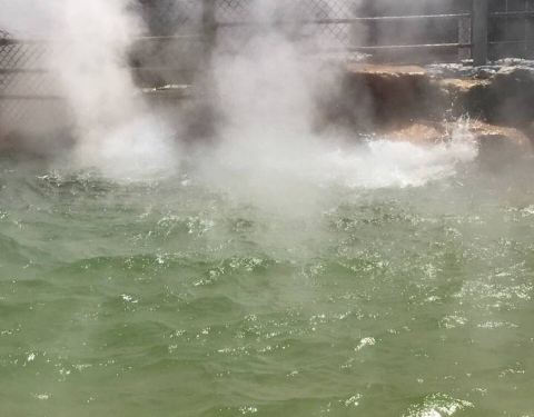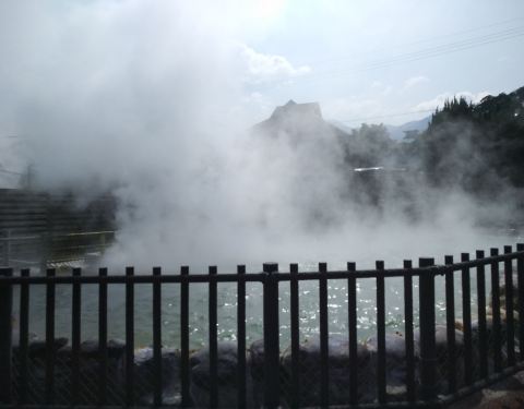 温泉水有99℃,而且不断涌出,雾很大,热气扑面而来,真感觉像是「地狱」一样