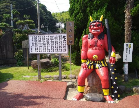 由鬼山的地名而来的。特点就是利用温泉的热度来饲养鳄鱼,现已有300余头,大大小小的都趴着不动。