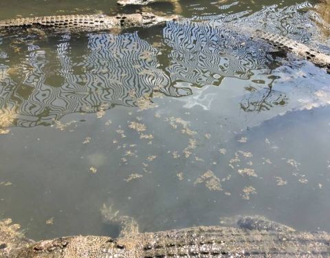 由于地热的缘故,鳄鱼都不怎么动,懒洋洋的。这里有许多鳄鱼栖息在此。地狱里有一个一代的鳄鱼标本,长5米