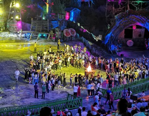 两个相比个人感觉还是洪水秀的场地更加的壮观一些