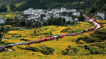 这个季节到婺源就是看油菜花的,最好的地方是江岭,其实在婺源走到哪里都可以看到油菜花田这个季节到婺源就是看油菜花的,最好的地方是江岭,其实在婺源走到哪里都可以看到油菜花田。除了江岭,还可去篁岭、理坑、庆源。