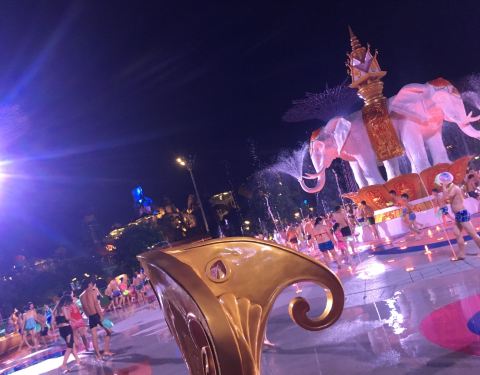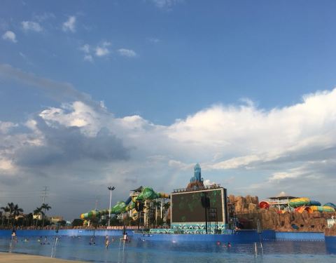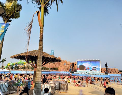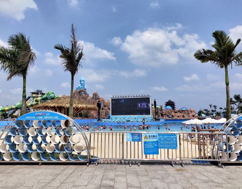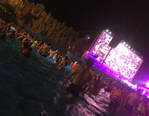 水上乐园冲浪区有灯光和音乐,舞台还有表演,超嗨!有好多儿童乐园