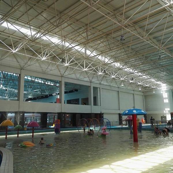 是个夏天带孩子玩水的好去处,主要是室内的,周一到周五的价格比较合适,门口好停车,中午的自助餐样式比较多,时间从11点半到12点半,一楼是造浪池和彩虹滑梯是免费的,大圆桶是需要另算钱的,造浪池要到下午3点左右才开始,但是其它时间也可以玩,就是没有浪,二楼有孩子玩的设施、泳池和正式的泳道,泳衣泳裤泳圈都可以自带,但是手牌千万注意,没了是要扣钱的,温泉也不错,淋浴准备的东西比较齐全,总体不论环境还是水质都很不错!