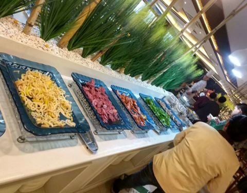 吃自助的时候竟然孩子也要儿童票,我孩子连1米都不到,刚两岁,这是说了半天才让进去,吃的东西还挺...