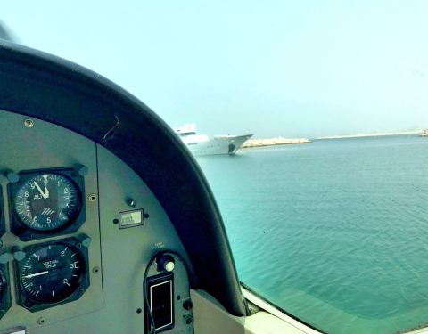 谢谢点评爸爸让我中了水上飞机票哈!到了现场坐副驾驶要支付150迪拉姆,性价比那么高必须支付啊! 看看宣传照片拍那么好,我们看到的就是朦胧一片,棕榈岛丑哭了!25分钟很快过去了,真的不值得!还是去跳伞吧!
