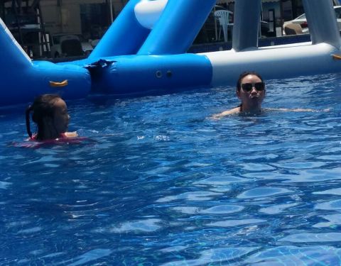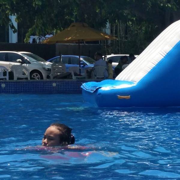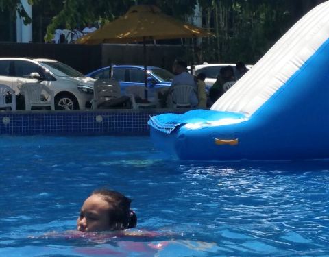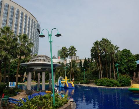 利用南沙大酒店完善的室外水上乐园,开展水上嘉年华项目,对外开放,住客可获门票免费进场两次。这里有一个大型环状池和三个小池,水并不深,而且还设渐进式斜坡。有好几个大充气垫漂浮在水上,看起来简单但要爬上去其实并不容易。也有一些滑梯之类的,大家都玩得很开心。不过营业时间较短,早上10点才开始,不设夜场,对住客来说没太多意义。