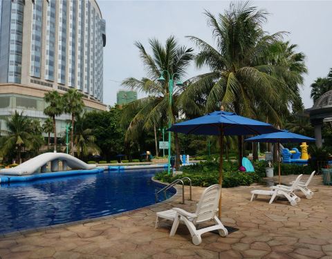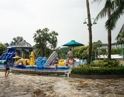 利用南沙大酒店完善的室外水上乐园,开展水上嘉年华项目,对外开放,住客可获门票免费进场两次。这里有一个大型环状池和三个小池,水并不深,而且还设渐进式斜坡。有好几个大充气垫漂浮在水上,看起来简单但要爬...