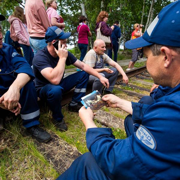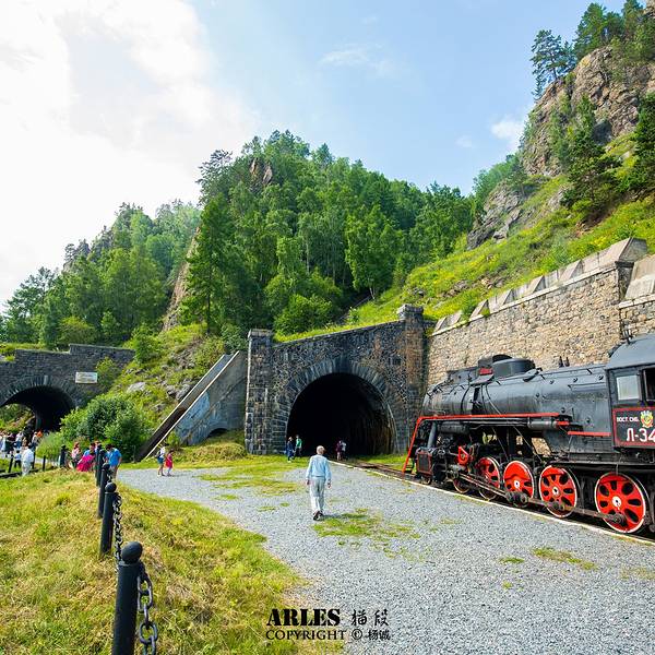 旅游列车车票安加拉河对岸的贝 加尔 港车站,需要搭船横贯河口早上10点,两台巨大的蒸汽机车停在贝 加尔 港站等待发车贝 加尔 港站房里改造成了一座小型的铁路博物馆,描述了环贝 加尔 铁路的历史,展示的各个时期的铁路设备列车开出贝 加尔 港后,便开始沿着湖岸前行蒸汽列车平时只有两节车厢,当天正好有个 中国 旅行团包车,加了一节车,并且加车窗户可以全部打开,拍照非常方便列车在中途停车时,乘务组的师傅们拿着 中国 车迷送给他们的明信片在欣赏,对前进型机车非常感兴趣宁静的 贝加尔湖 好似一块蓝宝石,美丽动人沿途居民售卖的各个时期纪念章,100-300卢布一个新线旁废弃的老隧道,如今的环贝 加尔 铁路基本上是在原先路基上重建,隧道、桥梁等也都 新建新旧两座大桥,而为了迎合数量众多的 中国 游客,俄方给桥起了个非常接 中国 地气的名字---情人桥曾经环贝 加尔 铁路经常因为山体滑坡、岩崩而停运,后来随着技术的发展,线路质量及安全性得到了很大提高环贝 加尔 铁路上的蒸汽列车使用的是苏联Л型蒸汽机车,机车采用1-5-0轴式。与 中国 目前仅存不多还在使用的蒸汽机车不同,它采用了更先进的自动加煤、润煤以及锅炉鼓风机等设备,运行起来的工作环境,污染噪音都要小很多。在 俄罗斯 ,时不时还会有一些蒸汽机车跑出来牵引各种旅游列车或者纪念列车,环贝 加尔 线的启点 斯柳江卡 站里,常年停放着3台蒸汽机车,用于牵引环湖旅游列车,堪称现代“活化石”。而 俄罗斯 几乎每个城市或者火车站,都会有一台蒸汽机车作为展览品停放在某处。而在 中国 ,与之相仿且研制生产晚很多的前进型蒸汽机车已经全部消失,而想体验一把蒸汽火车牵引的旅客列车更是难上加难,非常可惜。