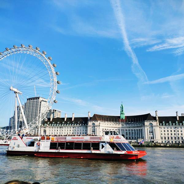 Finally,终于,在旅程最后一天,在这个拥有着大晴天的伦敦,实现了坐巴士绕城一周的愿望! 比对了下,还是选择了更熟悉的Golden Tours,还附赠了River Thames游船参观,持有旧票根还享受到了一丢丢优惠~这一次,终于完美地弥补了观光巴士的遗憾!我的防晒小妙招~路过白金汉宫,也算是一睹皇家骑兵的风采~【River Thames游船参观】 坐船欣赏再熟悉不过的风景,却能get另一种视角的美~船上是纯人工、纯英文的讲解,有种练英语听力的感觉,哈哈~中途坐了个游船之后,继续坐巴士开启观光行程~最后一站定格在海德公园,这座伦敦超著名的公园一直没有时间来打卡,刚好在最后一天一起弥补遗憾~虽然只是个普通的公园,但是身处其中发现它真的很美。虽是冬天仍有绿色柔软的草地,金色的阳光洒下,美得像一幅风景画~【小Tips】 1、车票找司机购买即可,一定全程保存好。船票需要先在服务窗口兑换,有好多家公司,看好River Thames的标志~ 2、游船排队人超级多,一定要眼疾手快地抢占靠边的位置,不然再美的风景都会伴着一堆脑袋的遮挡~