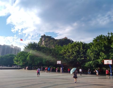 山顶可以看见贺州市八步城区的美好景色,早上很多人爬山,上午和晚上是公园最热闹的时候,广场舞占据...