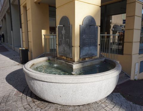 依云水源实在美丽的依云小镇上一处可以直接引用依云矿泉水的泉眼。有三个常年滴水的龙头,清澈甘洌的依云水源源不断的从这里流出,大家可以来免费饮用。