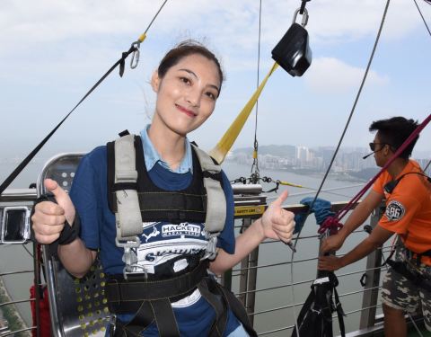 在网上提早买的票比现场便宜近1k还是很划算的,相比几年前去已经涨价好多了澳门的观光塔,算是一个不错的选择。在网上提早买的票比现场便宜近1k还是很划算的,相比几年前去已经涨价好多了!跳下去后什么时候怎么拉绳子,同时还要称重,估计太重或太轻都不能跳,会有工作人员帮忙拍照。 2017-12-13 09:08