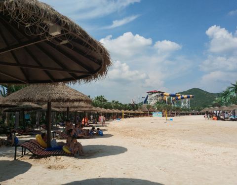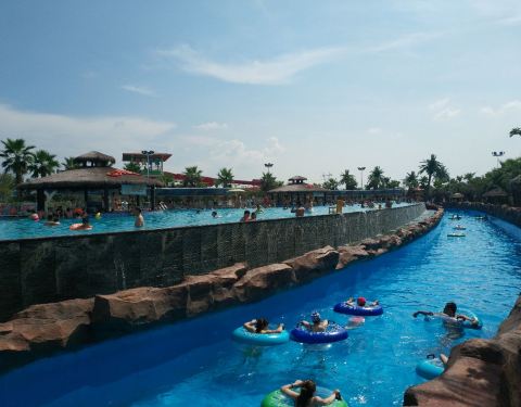 水上乐园与市区不到半小时车程,目前美团2大1小套票299,还可以用美团优惠券直减12元,套票包含60元餐券,够买两份套餐,吃的东西选择很多,分量也不错。游乐场分儿童区和成人区,全部玩到大约要3-4小时,考虑到天气热,比较晒,可以选择下午3点以后入园,玩到8点以后出园。入园只能每人带一瓶水,不能带饮料和零食,会检查。最重要一点,一定要避开周末,人少很多,大型游乐设备不用排队。