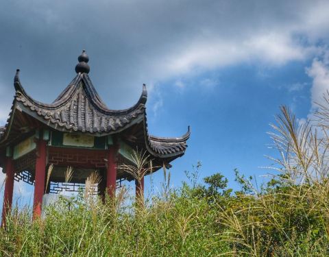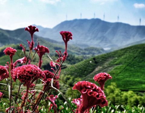 上山路有点艰难,基本是要披荆斩棘的,估摸着40分钟应该可以登顶,然后上面有亭子可以休息,视野相当开阔,大片大片的茶园和竹海,景色相当好。话不多说,看下面图吧