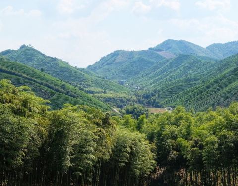 ...着40分钟应该可以登顶,然后上面有亭子可以休息,视野相当开阔,大片大片的茶园和竹海,景色相当好