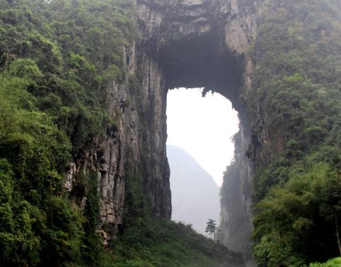 大自然把美丽景色锡给剑江村,这个天门洞谁敢挑战呢?