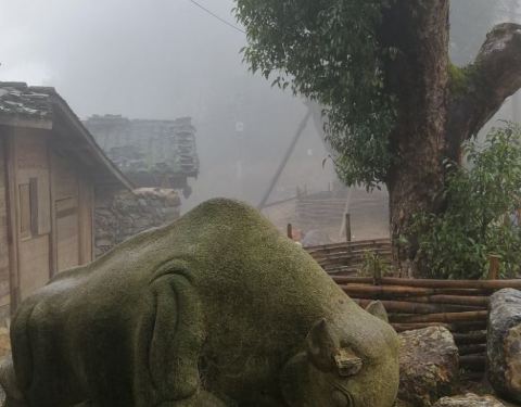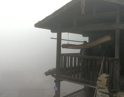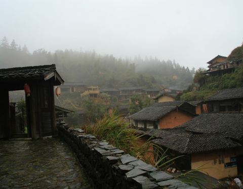 丁屋岭,一个寨门,一个无蚊叮咬的丁氏村落,一座宗祠和对面戏台,有一条不长的,叫牛气街的巷道和一个不高的了望吊脚木屋,这个可以拍戏也可以入戏的地方,有一种心情,含着雾气和樟本香,清新凉爽,纯朴无穷。
