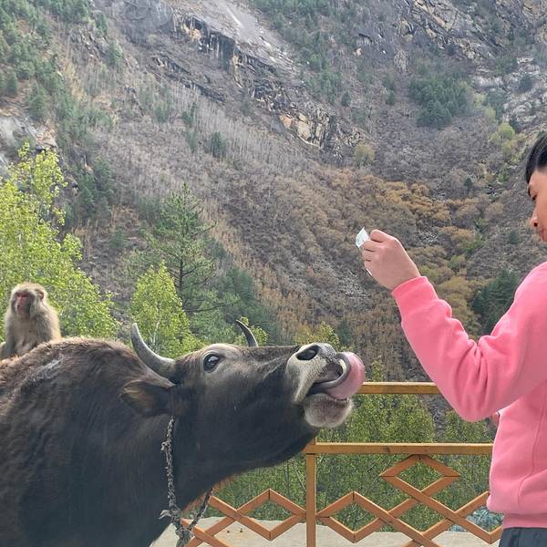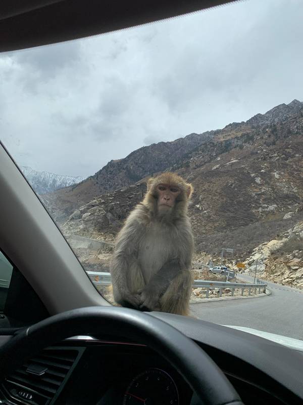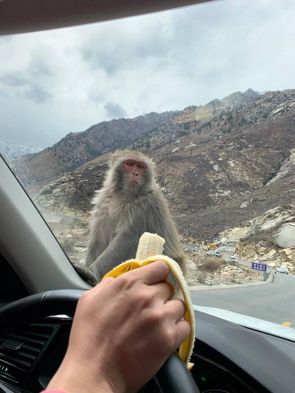 行程来到第五天,此时行程已过半,我们将要告别林芝,带着没有见到南迦巴瓦的遗憾。 原本今天计划去一个极为小众的景点——拉姆拉措,但没成想这里成为了此行又一个遗憾。路程较远,其中有不少山路,需谨慎驾驶从林芝前往拉姆拉措,全程300公里左右,大约需要6小时,也就是说今天我们只有一个计划,那就是圣湖拉姆拉措。 但当我们翻山越岭抵达通往拉姆拉措的入口时,却被工作人员告知,山上积雪,今天不允许上山。这无疑是给我们瞬间浇上一盆冷水,四个人在车里一时间不知所措。但尽管如此,我们也只能接受现实,毕竟安全是最重要的呀。 有计划前往拉姆拉措的小伙伴,尽量在5月份以后,这样能上去的概率会更大些。雅鲁藏布江上一条在建的铁路桥既然不能前往拉姆拉措,我们便收拾心情,慢下脚步欣赏沿途的风景。西藏随处可见的五星红旗在加查县通往山南市的路上,会经过猕猴的保护区,而且还会在路上与它们不期而遇。 这些野性十足的小猕猴非常调皮,但他们非常讲礼貌、灵性十足,绝不会从你手上抢东西,要是人们递东西给它们吃,它们会轻轻接过,绝不故意伤人。 但不排除有个别调皮的,下车投喂还是需要时刻保持警惕,以免被抓伤。有别于其他景区让人避之不及的动物们,这里的它们非常乖巧这里还有一头牛儿,相比于猕猴,它经常被冷落如果你在车里拿出吃的,猕猴还会直接跳上车子,蹲在挡风玻璃前看着你,可以说是非常有意思了,此时千万不要开窗,否则它们会直接钻进车里,寻找机会将食物丢出去是最好办法。看那眼神,觊觎我手里的香蕉哈哈哈哈哈哈小家伙们还会摆好姿势给你拍照