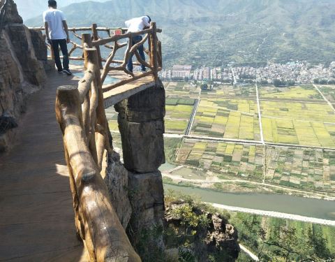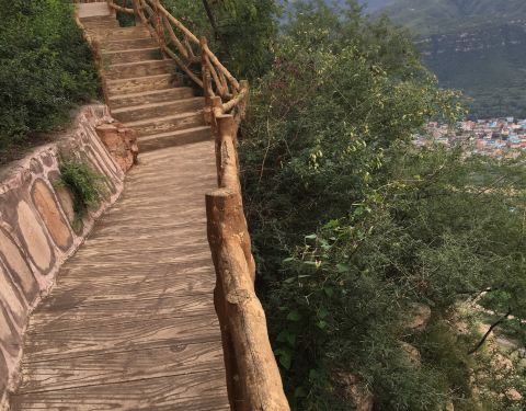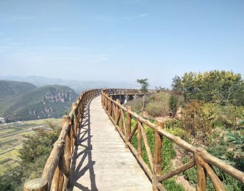 悬崖边栈道可以走一走,从那一块可以俯瞰涉县,下面的方格田地和水渠后组成不错的风景,还可以在山上吃到农家菜