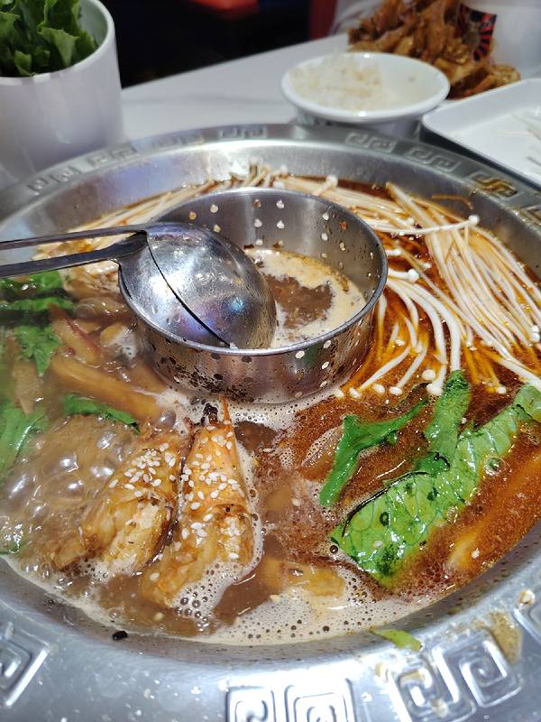 大叔的虾(容县店)的虾吃法是干锅+烫锅一起的,我还是第一次这样吃虾,味道和口感都不错,吃完虾还可以烫素菜吃,真好吃。