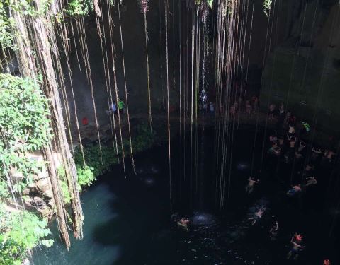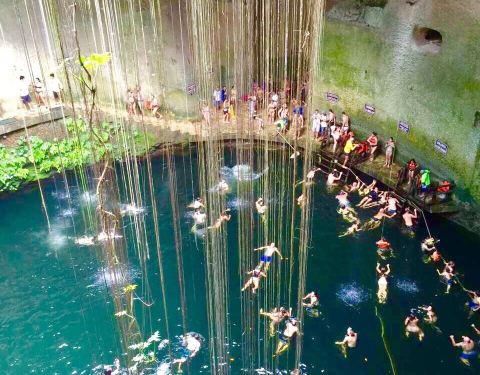 卡卡(Kiki)瓦米尔帕溶洞,与我国通常的溶洞不同,它不是一个山洞,而是一个天坑,一个硕大的天坑,现在是一个天然的水池,一个比普通水温更低的水池,而老外们在此玩得不亦乐乎,跳水游泳,他们厚厚的脂肪层耐寒...