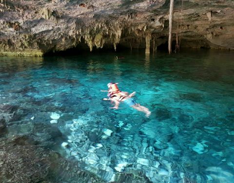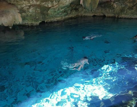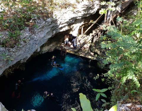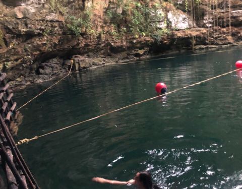 这里是尤卡坦半岛一处奇妙的地质景观,由于这里地区的地质沉降,形成了一个天然的大坑。所产生的地下水形成了一个天然的坑洞泳池,里面的池水非常的清澈,呈现出深邃的蓝色,在这里游泳真的是既奇妙又神秘,非常的舒服。