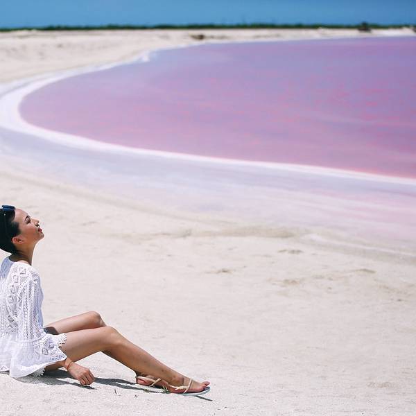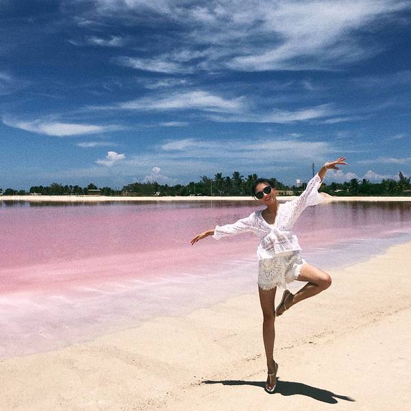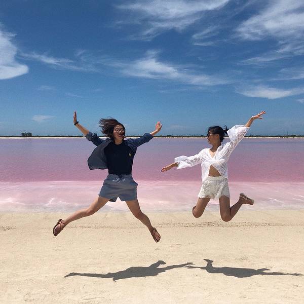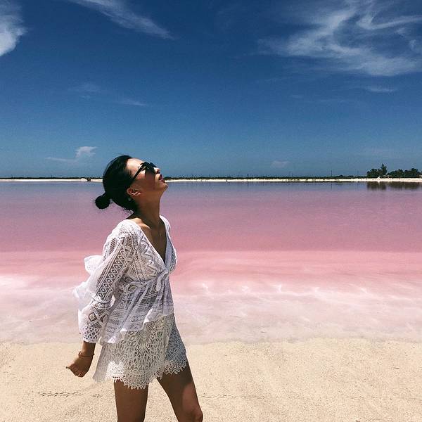 旅行中总是要去一些奇特的景点,来提升这趟旅程的体验,加深这个陌生地点的印象。可能路途会远甚至绕路,也会增加不必要的麻烦,但这是值得的。 我们的第一站,就是可以轰炸朋友圈的粉红湖。 粉红湖位于 墨西哥 尤卡坦半岛 ,我们一大早从 坎昆 城区的民宿出发,连开4个多小时才真正到达粉红湖。沿途只会经过一些小村镇,信号也不太好,开的路也是那种只能两辆车通行的小路。正午阳光最猛烈之时,我们到达目的地。当地小哥朝我们的车子走来,用很撇脚的英语告知我们:200比索可以进去半小时看粉红湖。据春哥回忆:今年一月份她们来的时候,游客是可以随意进入,半年时间就规划起来收费了?邻近的村子早年是盐的重要产区,正片海域保留了半岛最大的湿地生态圈,独特的粉红湖面与白色的盐岸,组合出梦幻甜美的天然景致。这种时候,不随时狂炸朋友圈还有天理吗?!必须没有啊,用我的移动流量和4G网络横扫朋友圈。记得春哥告诉我她上次来这里是阴天,粉红湖不粉,全靠后期。而现在呈现在我眼前的粉红湖,有着明显的粉色,是那种温柔的少女粉,杰哥在一旁感叹:比上次粉太多了。(手机拍摄会浓烈很多,我几乎没调色,颜色很炸裂)太阳当头照,手机举起来拍照几乎看不清屏幕里的自己到底好不好看,按了几张就跑。我们一直沿湖往里走,发现湖水越来越粉,导游小哥说,现在我们正在慢慢靠近太阳折射最强的湖面角度,这时候看上去是最粉的。这已经不是少女粉,是深粉色了,是一盘很好看的NARS腮红色…其实这个点拍人像很难拍好看,抱着打卡照即可的心态,竟然发现皮肤色出奇的好看。很幸运的是我们有看到火烈鸟,虽不是成群结队,但足以感叹这骚气的粉外衣真够美的。收费的原因不仅保护粉红湖不遭游客破坏,加强游客管理也有利于火烈鸟在此安静栖息不被打扰。左半粉,右半蓝。