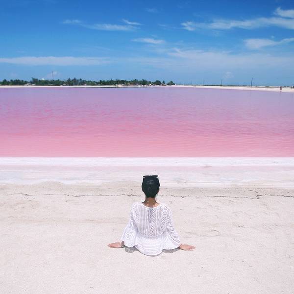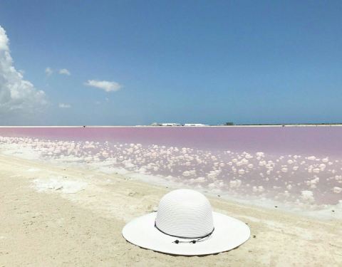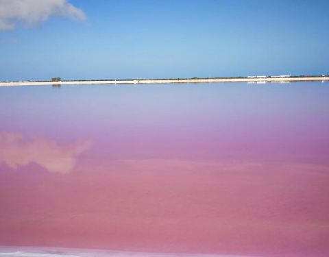 粉红湖位于 墨西哥...旅行中总是要去一些奇特的景点,来提升这趟旅程的体验,加深这个陌生地点的印象。可能路途会远甚至绕路,也会增加不必要的麻烦,但这是值得的。