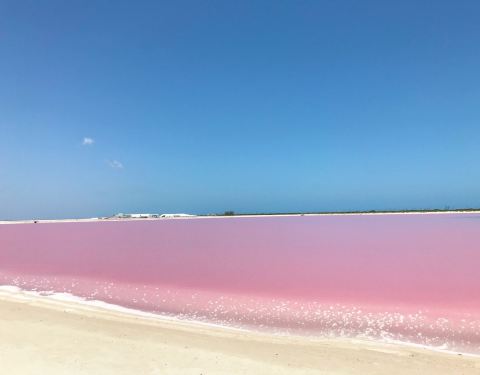 墨西哥坎昆的粉红湖已经久仰大名了,是必到的网红打卡点,一早起床坐了3个多小时的车赶到后大失所望,3月里太阳已经晒得不行,赶紧拍了些照片,一看照片拍得效果比实地漂亮,值了,打卡完毕。