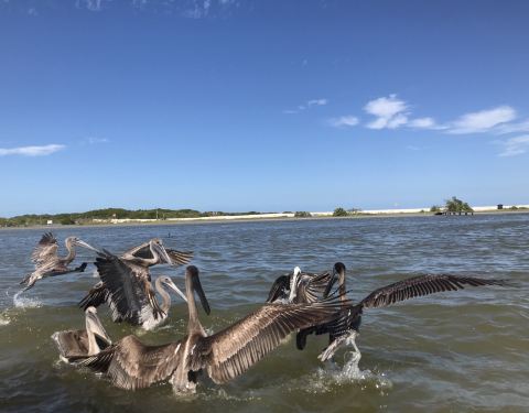 【墨西哥粉红湖生态游】 美丽的粉红湖是每位来坎昆的小仙女♀️必打卡的地方呀。晴天的粉红湖,蓝天反射在湖面,更加美丽!一阵风吹过,泛起阵阵涟漪… 一群火烈鸟准备腾空而起,飞向远方。 鹈鹕、鳄鱼、小海鸟...