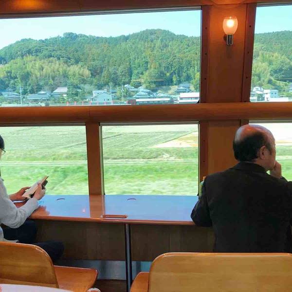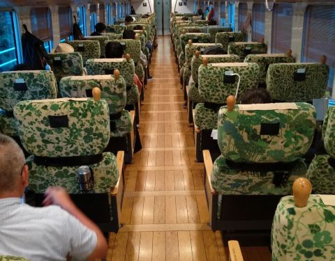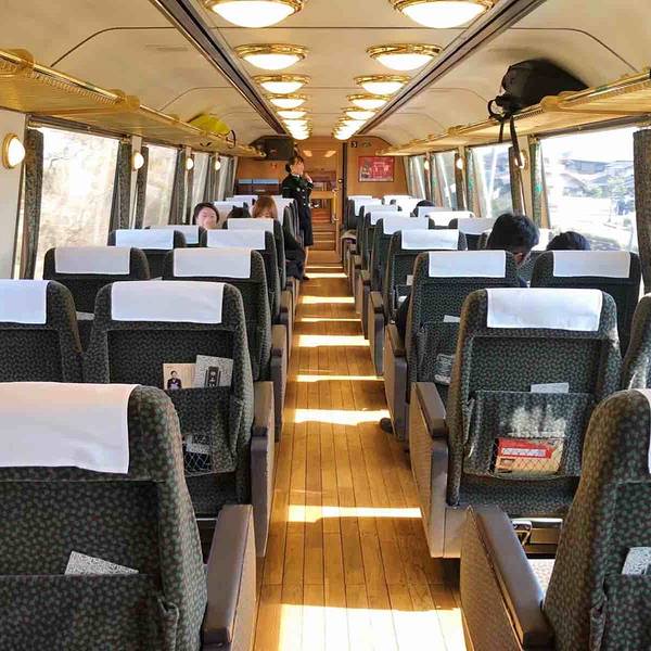 看到列车就感觉特别高和敞亮。由于座位是1车厢,从由布院到福冈是最后一节,没有预想中感觉那么好传说中的特色列车,特意到了福冈就预定了指定席,可能是最近游客少,预定很顺利。看到列车就感觉特别高和敞亮。由于座位是1车厢,从由布院到福冈是最后一节,没有预想中感觉那么好。