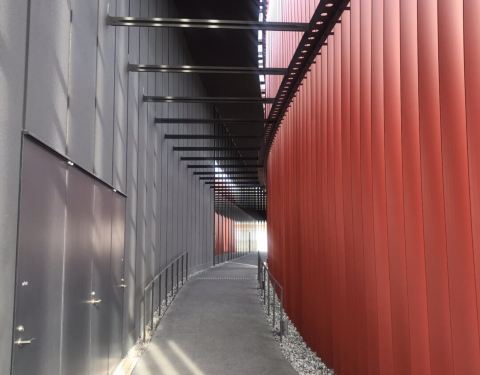 ...車到站还在从站台往出口走的路上就從窗口看見了這座紅色的建築,加上後面的大海和跨海大橋,畫面很美