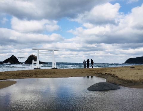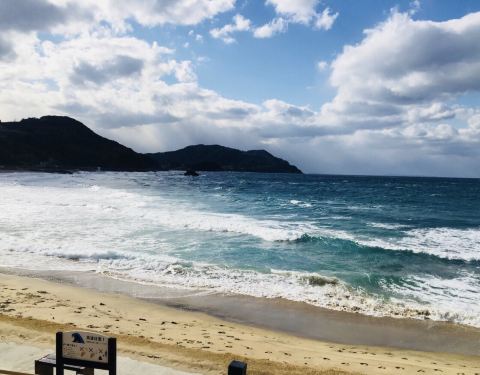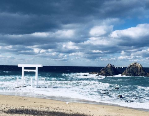 二见浦二次游,大冷天的在海边迎风溜宠(某人实在兴致太高了)和上次来的感觉挺不同的,这次的日本海好深幽