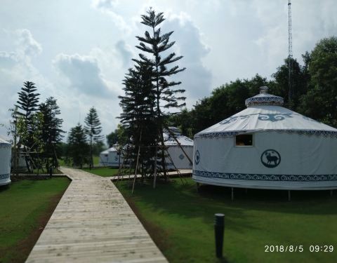 小木屋周边景色很美,随手一拍都是好照片。晚上有烧烤和表演,出门有轮渡跟观光车开回接送,早餐不错,美中不足空调声音有点大 影响睡觉,望改善,作为家庭休假还是不错的去处。 农场里的话,娱乐设施比较少,太...