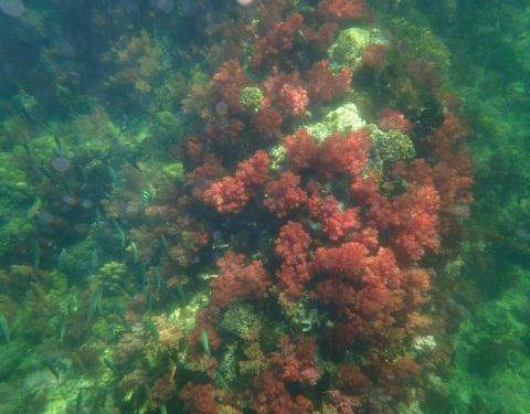 他们都是活的软珊瑚,珊瑚红的耀眼,太漂亮了,一群群的小鱼在珊瑚丛中躲躲藏藏实在是太可爱